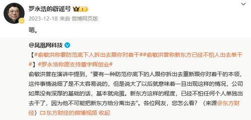 东方甄选离职员工爆料一事在网络上引发了热议。有网友表示:“没想到东方甄选内部问题这么多,真是让人意外。”也有网友认为:“离职员工只是个别现象,不能代表整个公司。”